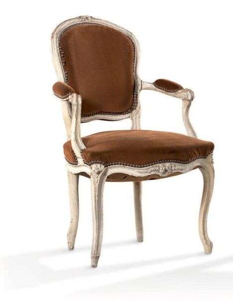 Deux fauteuils à dossier cabriolet en bois mouluré sculpté et laqué crème, à décor de fleurettes.