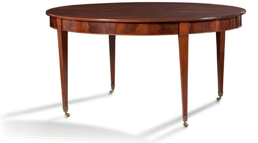 Table de salle à manger en acajou et placage d'acajou, à bandeau, à ouvert