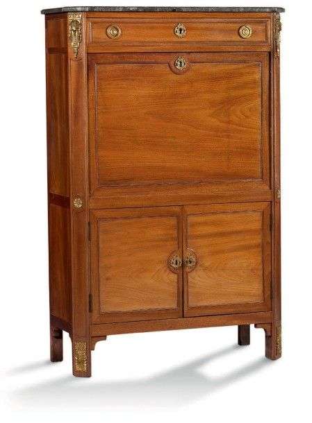 Secrétaire de forme rectangulaire en acajou et placage d'acajou mouluré.