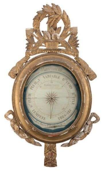 Baromètre par GOHIN, opticien en bois sculpté et doré, à décor de feuillages et attributs du jardinage.