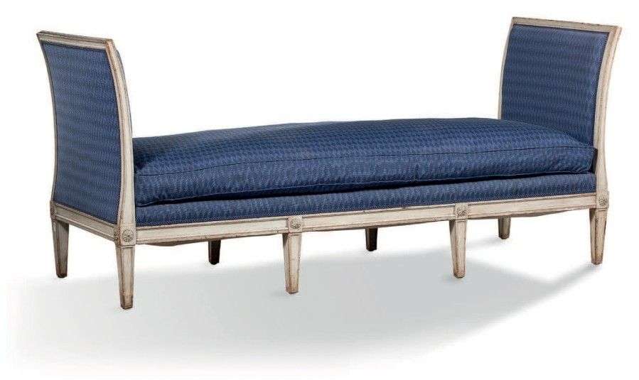 Banquette en bois laqué gris mouluré.