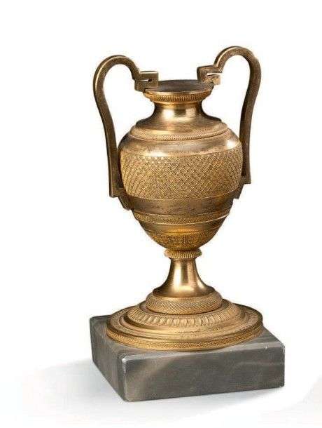 Paire de petits vases balustres en bronze doré partiellement amati.