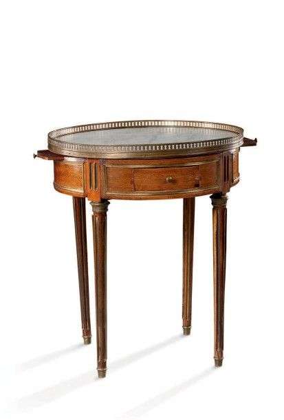 Table bouillotte en acajou et placage d'acajou, ouvrant par deux tiroirs et deux tirettes, en ceinture.