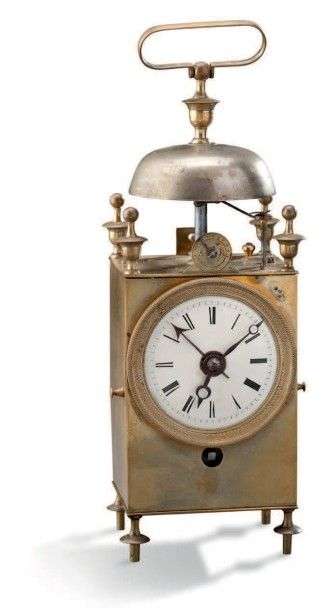 Pendule dite «capucine» à boitier en laiton| sonnerie à la demande| le cadran indique les heures en chiffres romains.