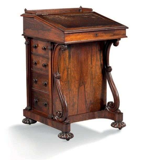 Petit bureau «Davenport» en acajou et placage d'acajou, il ouvre par un ab