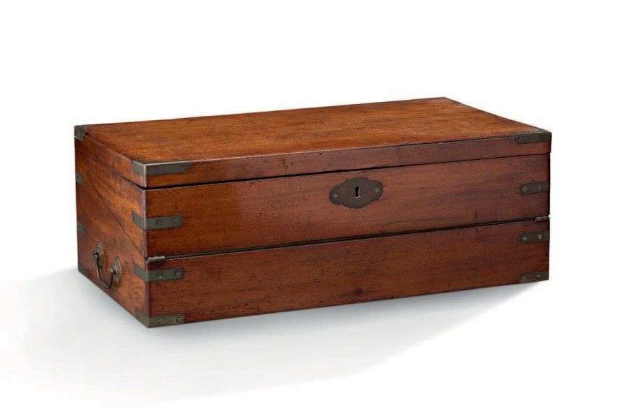 Écritoire de voyage en bois naturel, écoincons en métal doré.