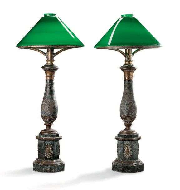 Les fûts balustre reposent sur une base octogonale à décor de pots à feu.