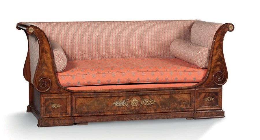 Lit de repos en acajou et placage d'acajou flammé, mouluré.