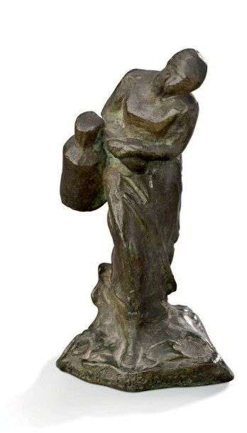 La porteuse de lait bronze à patine brune, signé sur la terrasse.