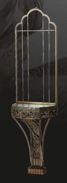 Iron console and its mirror with floral and scrolls motifs.