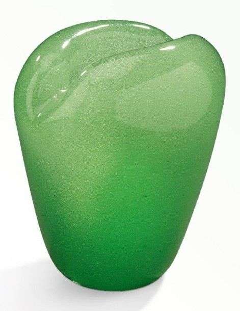 Green glass vase. Signed. Circa 1940-1950.