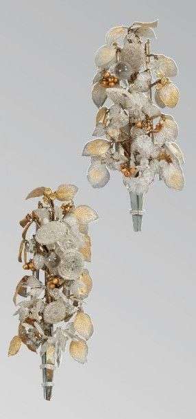 Paire d'appliques composées de divers éléments en verre partiellement doré.