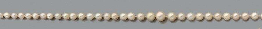 Collier composé d'une chute de 70 perles fines. Fermoir bâton en or 18k.