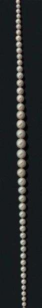 Collier composé de 98 perles fines en chute. Fermoir bâton en or gris 18k