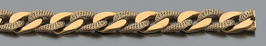 Bracelet articulé en or jaune composé d'une alternance de maillons tressés et lisses. Poinçon de maitre Georges LENFANT. Signé et numéroté.
