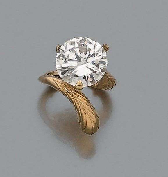 # Bague en or jaune 18k ciselée sertie d'un important diamant taille brillant.