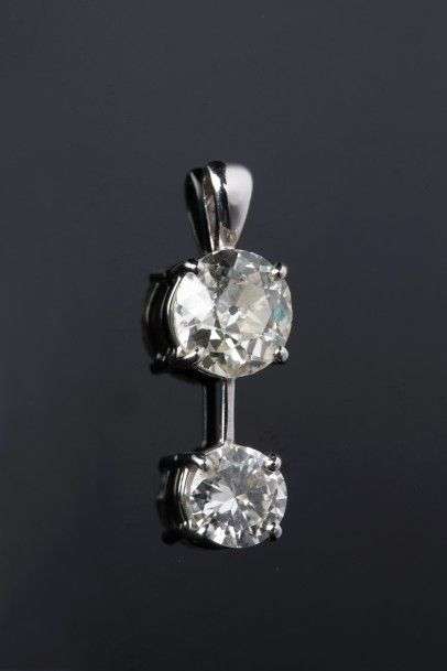 Pendentif en or gris 18k serti d'un diamant de taille ancienne et un diamant taille brillant plus petit.