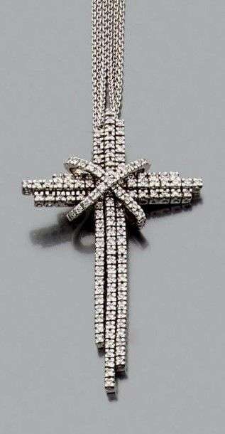 Croix articulé en or gris 18k sertie de diamants de taille brillant.