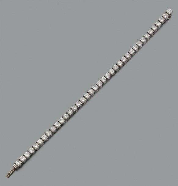 Bracelet "ligne" en or gris 18k sertie de diamants de taille brillant.