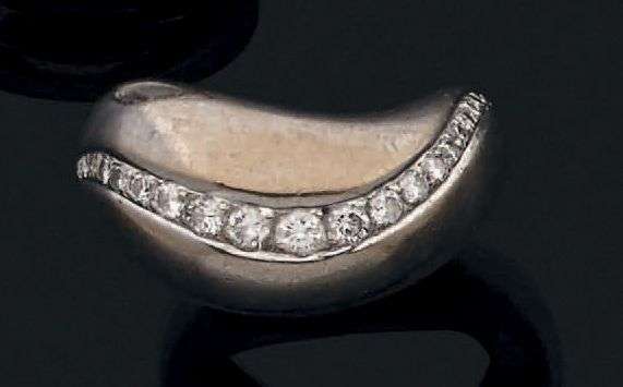 Bague "ondulée" en or gris 18k sertie d'une ligne de diamants de taille brillant. Signée.
