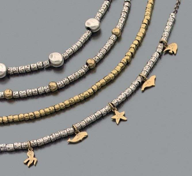 Ensemble composé de quatre bracelets en or jaune 18k et argent. Signé.