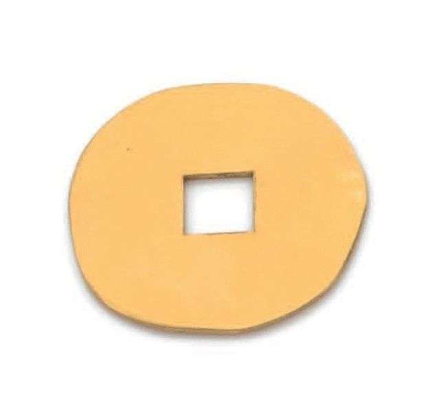Pendentif composé d'un disque en or jaune martelé 18k ajouré d'un carré au centre. Signé