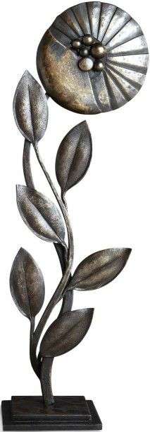 Importante sculpture en fer forgé figurant une grande fleur stylisée