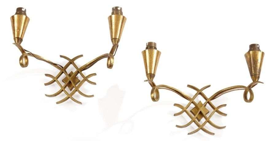 Plafonnier en fer forgé à corps rectangulaire ajourée composé de motifs d'enroulements à dix lumières.