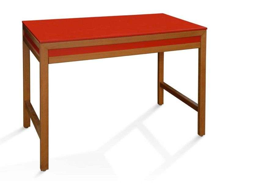 Bureau en hêtre et bois laqué rouge ouvrant par un tiroir latérale et reposant sur quatre montants droits.