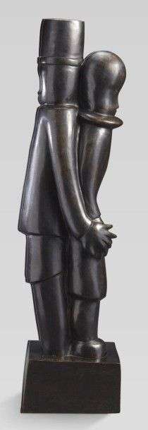 Sculpture en bronze patiné brun figurant un couple de dos.