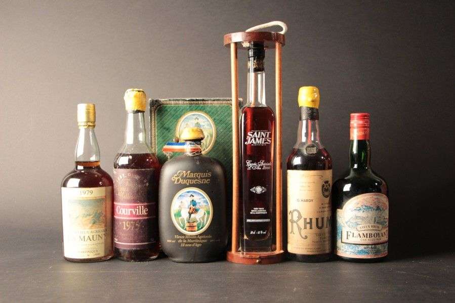 1 B RHUM VIEUX AGRICOLE (e.t. légère) La Mauny 1979 1 B TRES VIEUX RHUM (M.B| e.l.s| bouteille cirée) Courville 1975 1 B VIEUX RHUM AGRICOLE DE LA MARTINIQUE 12 ANS D'AGE (Bouteille cirée| étui abimé)