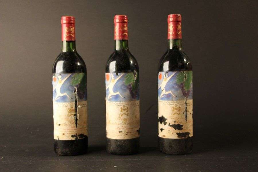 3 B CHÂTEAU MOUTON ROTHSCHILD (1 B.G.-| e.t.a. à e.q.i. dont 1 millésime illisible)