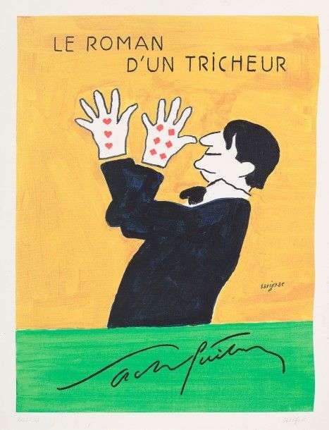 Le Roman d'un tricheur. Tirage lithographique contresigné et numéroté en marge 60/150 ex., 95 x 73 cm. Quelques salissures en marge.