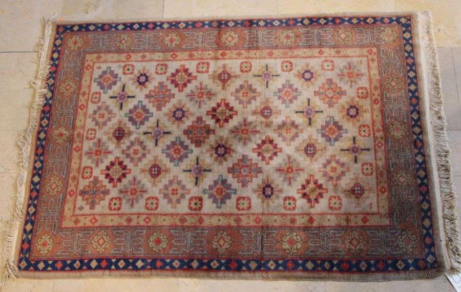 Tapis à fond jaune, semis de caissons cruciformes multicolores