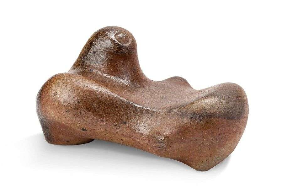Sculpture anthropomorphe figurant une femme allongée, en grès de La