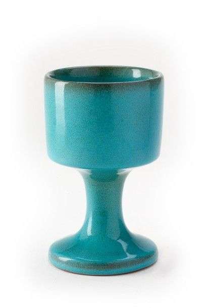 Petit calice à émail bleu finement moucheté