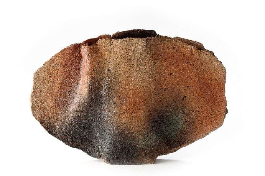 Vase feuille en grès chamotté, cuisson au feu de bois, présence de pyrites
