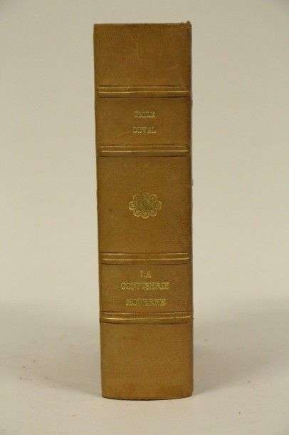 Desserts, glaces, chocolats. 1900 recettes. 300 gravures. Bar sur Aube, Chez l'Auteur, A Paris, chez Mme Darenne (Grande imprimerie de Meulan. A. Réty), s.d. [circa 1914]| fort in-8, demi-basane à coins fauve, dos à nerfs, fleuron et titre dorés, premier plat conservé. C'est le plus important ouvrage moderne sur la confiserie et sera, pendant près d'un siècle, la véritable bible pour les professionnels et les amateurs avertis