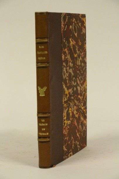 Fontaines - Guérin (Hardouin de) Le Trésor de Venerie, poème composé en 1394 par Messire Hardouin de Fontaines Guérin| publié pour la première fois avec des notes, par le Baron Jérôme Pichon et orné de gravures à l'eau-forte reproduisant les miniatures du manuscrit, par M. Fréd-Villot. Paris, Téchener, Potier, Aubry, 1855| in-8, demi-chagrin lavallière, titre et tête de cerf dorés au dos, couverture vieux rose pâle conservée (rel. mod.)| 8 pp. prél., 96 pp., frontispice et 21 planches hors-texte. Édition originale, "tiré à petit nombre sur Hollande, de l'un des plus anciens traités de vénerie composé en français| presque le contemporain de Gaston Phoebus." (Thiebaud-406-407). Bel exemplaire de cet ouvrage très rare, réédité en 1856 à 200 ex