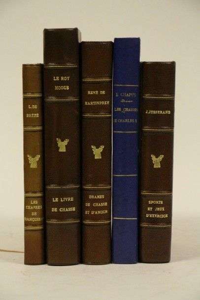 Chasses historiques Lot de 5 ouvrages reliés Chapus - Souvenirs de l'ancienne cour. Les Chasses de Charles X. 1838. in-8, couv. cons. Brézé et Cte Hector de La Ferrière - Les Chasses de François Ier racontées par Louis de Brézé. précédées de La Chasse sous les Valois. 1869| in-12, couv. cons. Jusserand - Les Sports et jeux d'exercice dans l'ancienne France. 1901| in-12. Le livre de Chasses du Roy Modus. 1873| in-8 Martimprey: Drames de chasse et d'amour sous Louis XV. Sous la Terreur. Ill. Marquise de Noailles. Bon état général