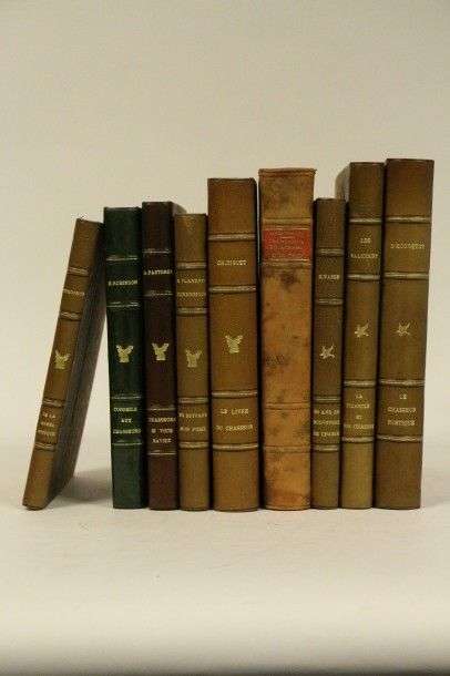 VARIA Lot de 9 volumes in-8 et in-4° reliés Valincourt - La Picardie et ses chasses. 1947, envoi Houdetot - Le Chasseur rustique. 1955. ill. coul. éd. num Vasse - 50 ans de souvenirs de chasse. 1928. Diguet - Le livre du chasseur. (1881). EO. couv. coul. cons. Testart — Traité pratique de chasse et du gibier. (circa1900) EO. Robinson - Conseils aux chasseurs. 1865. lithos. et pl. HT Pastorel - Chasseurs, si vous saviez. 1948. Flament-Hennebique - En suivant mon fusil. 1950. Xénophon - De la cynégétique ou art de la chasse. 1912