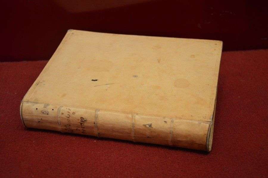 [LIVRES ILLUSTRES - DESSIN ANCIEN] - OVIDE. Le metamorfosi di Ovidio ridotte da Giovanni dall'Anguillara in Ottava rima. Con le Annotationi di M. Gioseppe Horologgi... Venise, Bern, Giunti, 1584| In-4 de 8ff., 547 pages. Plein velin rigide, dos à nerfs, titre à l'encre, tranches bleues (reliure ancienne). Belle édition orné d'un titre - frontispice et de 15 gravures sur cuivre à pleine page de Giacomo Franco. Encadrement historié et gravé pour chaque argument, lettre ornées. Titre remonté avec de petites pertes, le dernier feuillet de la table absent a été remplacé par un feuillet blanc avec au recto la fin de la table soigneusement calligraphié et au verso la première figure de G. Franco a été copiée au lavis. Travaux de vers pages 250 à 258 avec perte de plusieurs mots aux pp. 250-252| réparation sommaire p. 353 avec un morceau de papier recouvrant un e partie du texte, plusieurs mouillures et quelques salissures