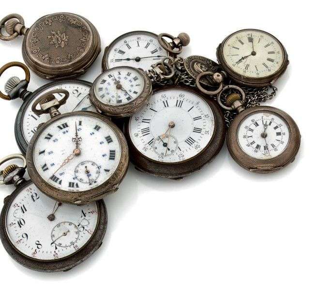 Lot de 4 montres gousset et 5 montres de poche en métal argenté