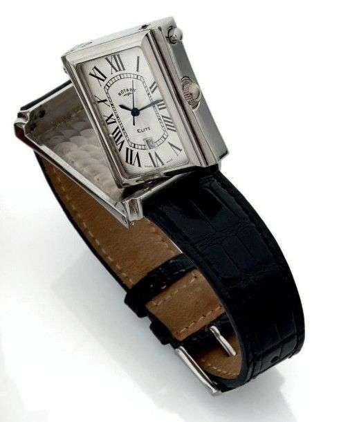 Cadran noir, chiffre romain, aiguilles bâtons.