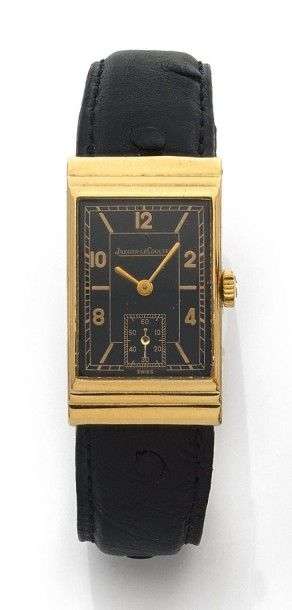 Cadran noir, chiffres arabes et aiguilles feuilles.
