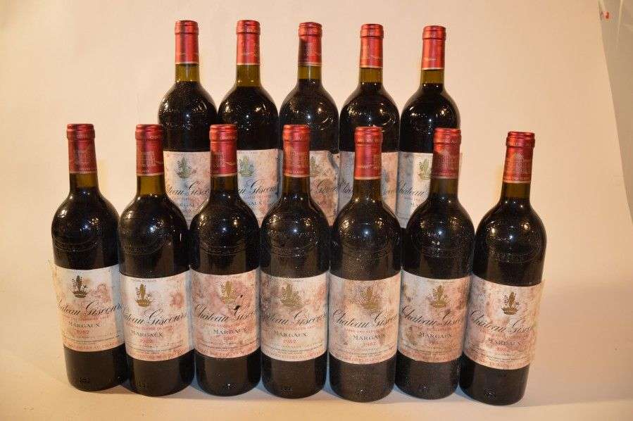 12 B B CHÂTEAU GISCOURS (3 B.G| 1 T.L.B| e.t.h. à e.a. dont certaines décollées.)