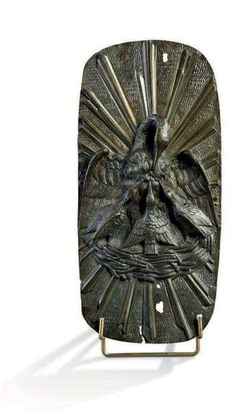 Plaque en bronze à patine brune représentant le Saint-Esprit.