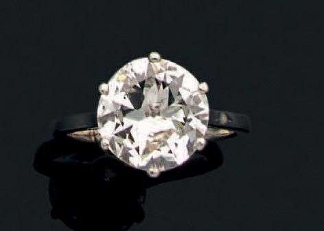 A platinum ring set with ancient-cut diamond weighing 4 carats