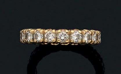 Alliance en or jaune 18k sertie de diamants de taille brillant.