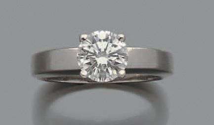 Bague en platine sertie d'un diamant solitaire de taille moderne.